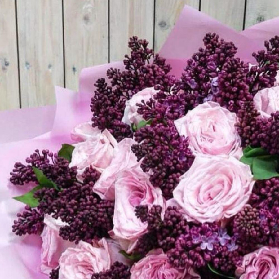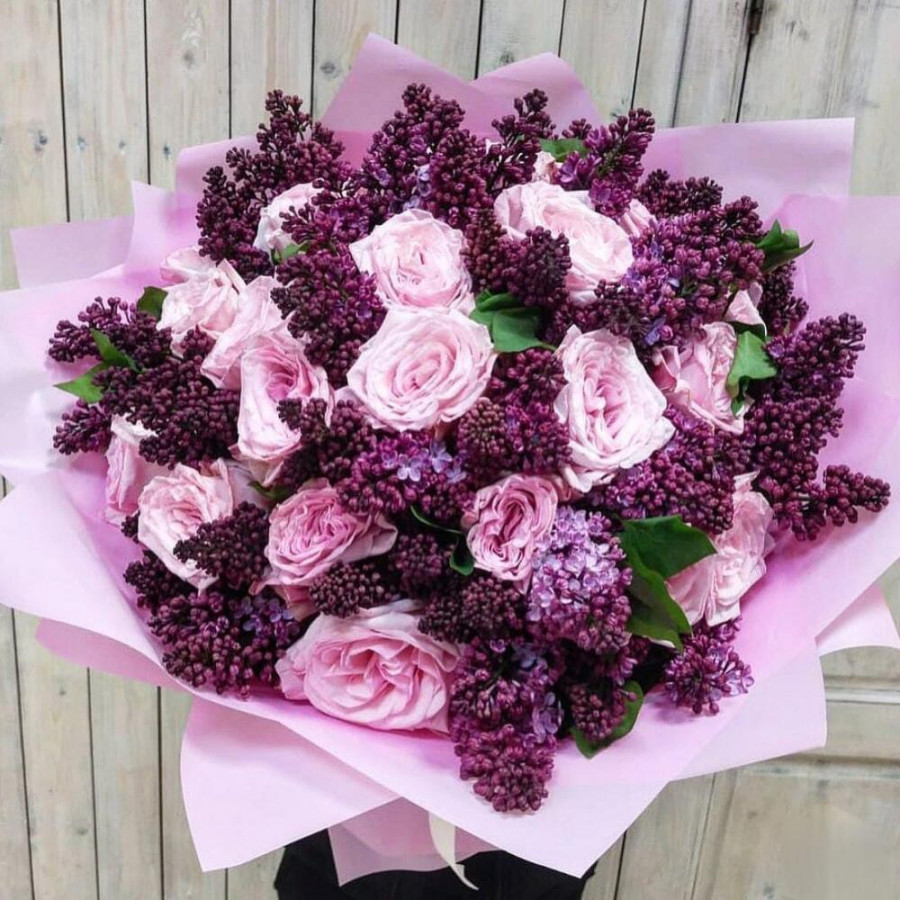 Весенний букет сирени и роз в Лобне